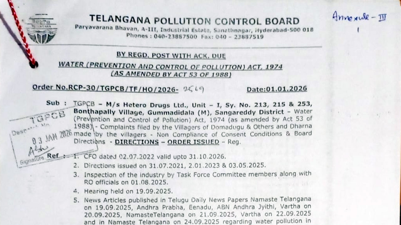 * హెటిరో సంస్థకు స్పష్టం చేసిన పీసీబీ అధికారులు * ప్రజారోగ్యాన్ని, పర్యావరణాన్ని దృష్టిలో ఉంచుకొని తదుపరి నోటీసులు లేకుండా చర్యలుంటాయని హెచ్చరిక * తాము సూచించిన…