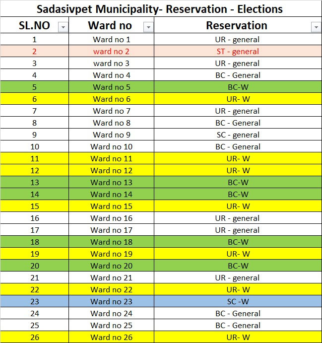 సదాశివపేట మున్సిపాలిటీ వార్డుల రిజర్వేషన్ల జాబితా